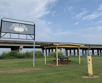 In the 1980s, the Lake Maurepas Society met (& drank) at the Gator’s Den in Galva across the road from a spot of land on the lakeshore. Beautiful sunsets peeked from under the Interstate bridge and Big Chief Dave Hargrave came up with the idea of building a park. With available resources and necessary permissions it was made to be so. The picnic area is well-used, has endured and stood the test of time (and hurricanes) and is still delivering stunning sunsets. It is currently well taken care of by the Lions Club of Laplace, who were kind enough to adopt and maintain it along with the help of St. John the Baptist Parish.